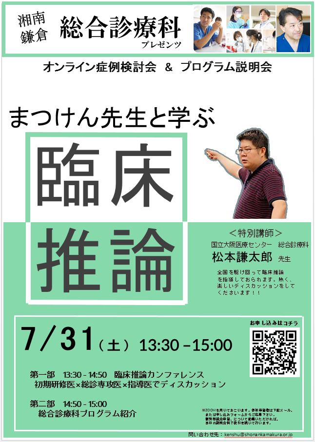 【まつけん先生と学ぶ臨床推論】オンライン症例検討会&プログラム説明会 7/31(土)13:30~