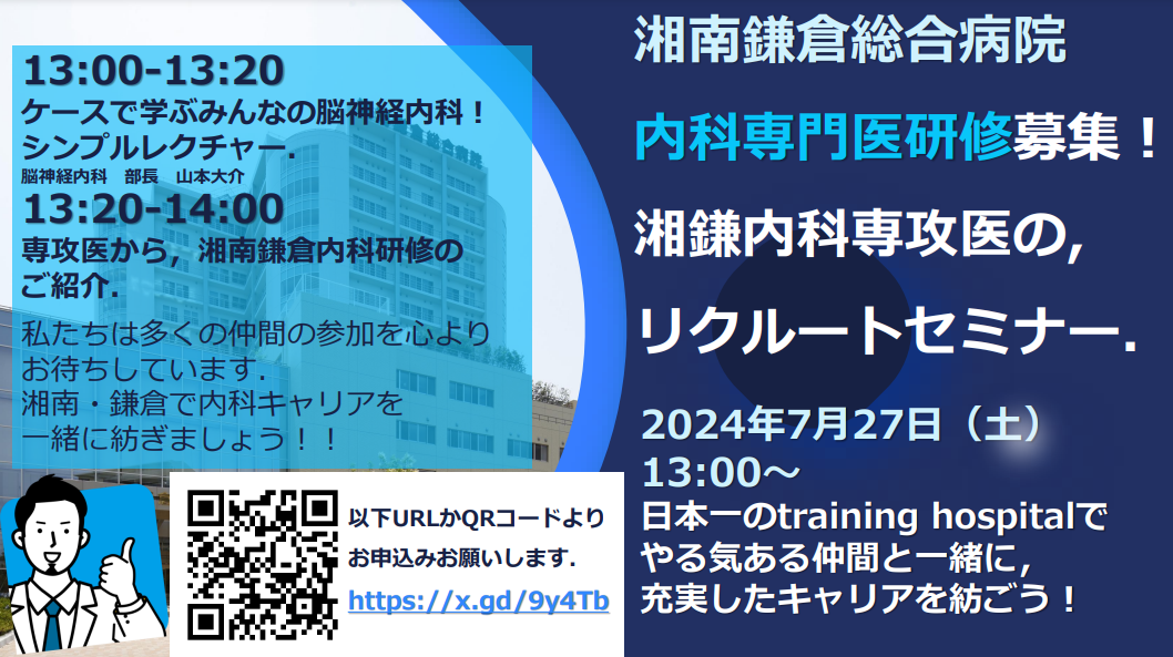 概要: 内科専門研修の雰囲気をお伝えするセミナーと説明会です。